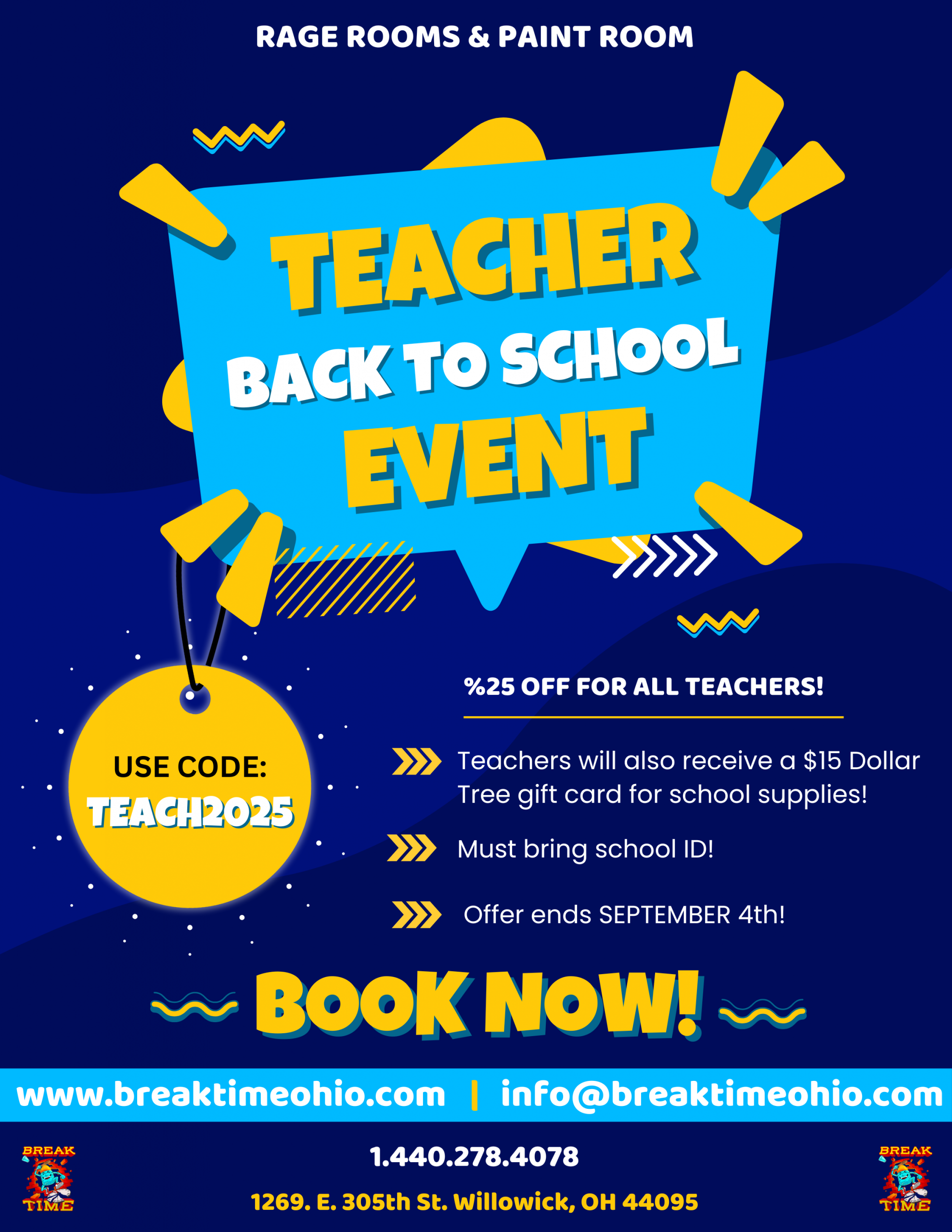 All teachers will receive %25 off their bookings until September 4th! Must bring school ID. One discount per appointment.